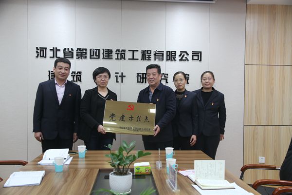 集团党委副书记张庆虎向公司河北四建党建示范点授牌