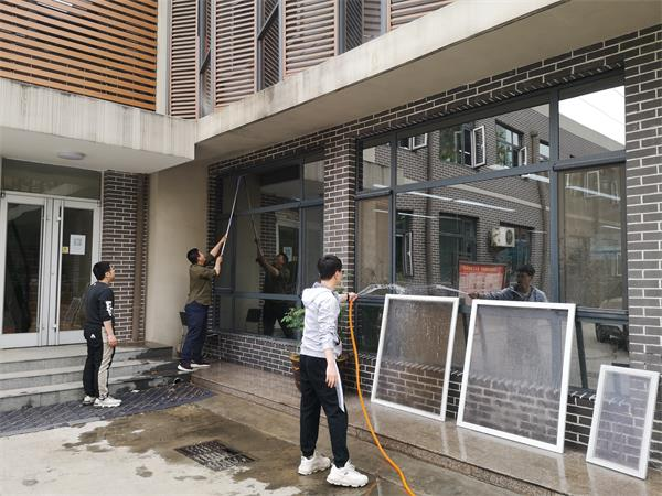 本次活动主要针对河北四建的公共卫生区域。先是擦玻璃,职工孟荣荣说:“用报纸擦吧,以前都用报纸擦,擦得很干净。”“那都是老黄历了,现在都用擦玻璃神器啦,我早准备好了。”赵蓓说。只见赵蓓拿出自带了“刮水”功能的擦玻璃神器,沾上洗洁精水,吸附到玻璃窗上,不一会儿就把玻璃擦得干干净净。一楼设计室的外窗高,综合办准备了加长杆的玻璃刮子,司南带领几名青年职工认真擦拭,使窗户变得洁净透亮。接下来打扫办公区域,职工们不放过一个盲区、不落下一个角落。大家对办公室、楼道、卫生间的卫生死角进行清扫、喷洒消毒;对打印机、饮水机、储物柜等公用设备进行擦拭消毒;对门把手、冲水按钮、水龙头开关等擦拭消毒。室内清理完后清理小花园,大家拿着扫把、铲子等工具,清扫拔除杂草,捡拾花池的杂物,清理卫生死角,经过两个小时的劳动,办公环境内外焕然一新。