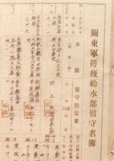 二是在第二展厅的记载3497名部队成员信息的《关东军防疫给水部留守名簿》。这是陈列馆通过多方努力,从日本国立公文书馆获取并首次展出的重要史料。它为深入研究731部队的总体规模、人员来源、身份构成等提供了一手资料,从组织架构层面揭露了731部队的罪恶体系,让人们更清晰地认识到这支细菌战部队的全貌。至此,日本以侵略为目的设立的6支细菌战部队的留守名簿全部入藏我馆,成为揭露日本侵华细菌战罪行、还原历史真相最有力的证据。