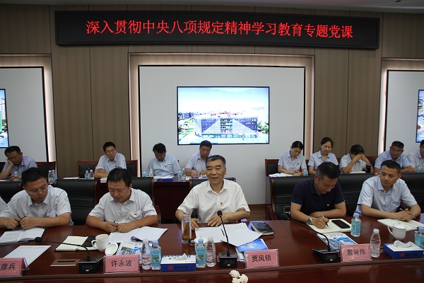 贾凤锁首先向大家传达学习了6月27日省委书记倪岳峰就深入贯彻中央八项规定精神学习教育讲授的专题党课精神,随后他紧密联系自己的思想认识和工作实际,从五个维度切入,以详实案例、深刻见解,结合集团实际发展需求,为与会人员带来一场别开生面、干货满满的党课。一是深刻领会开展深入贯彻中央八项规定精神学习教育的重大意义。这是巩固深化主题教育和党纪学习教育成果、纵深推进全面从严治党的重要举措;是密切党群干群关系、巩固党的执政基础的必然要求;是加强干部作风建设、实现企业高质量发展的有力保障。开展深入贯彻中央八项规定精神学习教育,就是要促使集团党员干部以更加优良的作风,积极投身到集团确定的各项目标任务中,勇于担当、积极作为,努力开创集团高质量发展新局面。二是准确把握习近平总书记关于加强党的作风建设重要论述的核心要义。本次学习教育,为全体党员配备了《习近平关于加强党的作风建设论述摘编》这本学习书籍,贾凤锁结合工作实际谈了自己的学习体会。三是认真防范企业贯彻中央八项规定精神潜在的风险和问题。要防范形式主义损害企业发展质量、官僚主义削弱企业凝聚力、享乐主义影响党员干部形象、奢靡之风造成国有资产流失等四类风险。四是全面汲取深入学习贯彻中央八项规定精神的成效和经验。集团各单位聚焦重点任务,多元创新学思践悟教育模式,扎实推进学习教育走深走实。特别是今天参会的单位学习教育成效有目共睹。比如:四建公司通过抓好领导班子学习示范,进一步引领广大党员干部深化对中央八项规定精神的领会,凝聚发展共识,上半年市场开发87.2亿元,同比增长83%。五是切实把学习教育成果转化为推进集团高质量发展的强劲动力。突出整治整改工作重点,全力推动学习教育走深走实;聚焦领导班子作风建设,锻造做强做优做大企业“领航团队”;围绕生产经营中心工作,激活促进高质量发展“动力源泉”;直面“急难险重”攻坚任务,筑牢完成年度目标任务“攻坚堡垒”。课堂上,大家认真听讲、做好笔记,积极参与互动交流。贾凤锁希望以此次学习教育为契机,强化政治担当,保持战略定力,深刻把握中央八项规定精神的时代要求,坚决纠治“四风”顽疾,弘扬真抓实干作风,团结带领全体干部职工以昂扬姿态、务实行动,共同书写集团高质量发展的崭新篇章!